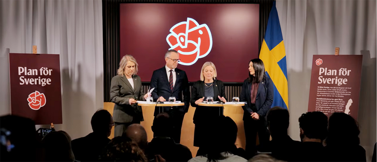 * S kommer ”inte att vara soft on crime”, en svensk maffialag med kollektivt straffansvar för kriminella gäng, bekämpa arbetslöshetskriminalitet, ska bryta nyrekryteringen med nya insatser ökad övervakning punktmarkering av unga och insatser för familjer i riskzonen, ny politik för att bryta segregationen, Sverige ska inte ha utsatta områden, staten ska göra mer för att förbättra förutsättningarna i dessa områden.