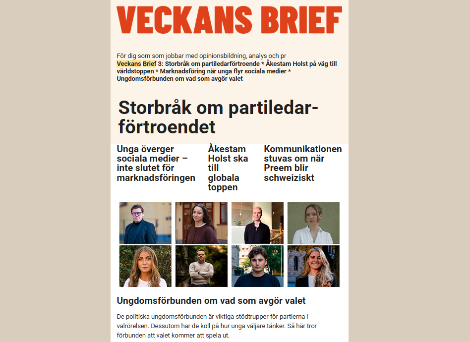 Varo energy, Preem, Varopreem, Argos, Bellbird, Dagens opinion, Åkestam holst, Yo adrian, Buzzmore, Ungsvenskarna, Sverigedemokraterna, Google, Facebook, Grön ungdom, Miljöpartiet, Sveriges socialdemokratiska ungdomsförbund, Tiktok, Socialdemokraterna, Kristdemokratiska ungdomsförbundet, Kristdemokraterna, Eu, Ung vänster, Vänsterpartiet, Moderata ungdomsförbundet, Moderaterna, Centerpartiets ungdomsförbund, Centerpartiet, Liberala ungdomsförbundet, Liberalerna, Grön Ungdom, Miljöpartier, Newsmachine, Norge, Danmark, Grönland, Finland, Island, Usa, Nobels fredspris, Demoskop, Schibsted, Svd, Aftonbladet, Indikator, Novus, Verian, Tidösamarbetet, Ipsos, Svt, Sr, Tv4, Dagens nyheter, Tt, Göteborgs-posten, Ungdomsbarometern, Instagram, Bizkit havas, Discord, Youtube, Snapchat, Gerillaägget, Ladida agency, Sweet, Havelle, Hsng, Scream mediabyrå, Perfect fools, Spöket, Swinton international, Redgert comms, Berlingo media, Teach for sweden, Arena opinion, Bbdo, Universal music group, Gil, Visionhub, Operaterrassen, Optimizely, Consid, Childx, The body shop, Djurens rätt, Nord ddb, Shein, Amazon, Riksdagen, Justitieutskottet, Guldägget, Liquid wind, Filmstaden, Sveriges jordägareförbund, Tco, Humana ab, Northvolt, Synskadades riksförbund, Svensk biblioteksförening, Living cities, Föreningen frisk mat, Villaägarna, The labyrinth, Unibap, Skärmtrygg barndom, Meta, Bcg, Chatgpt, Gemini, Wall street journal, Cambridge analytica, Bp, 67 eleven, Skims, Resumé, Dr pepper, Vaseline, Fanatics, Super bowl, Turning point usa, Cia, Israel, Frankrike, Egypten, Lo, Prime, Bbdo nordics, Klarna, Mcdonalds, Carat, Aura-koncernen, Noa, Dove, Talita, Skatteverket, Pressbyrån, Mischief, Wieden+kennedy, Oatly, Kapero, King, Spotify, Consulting, Connect, Bold, Ignite